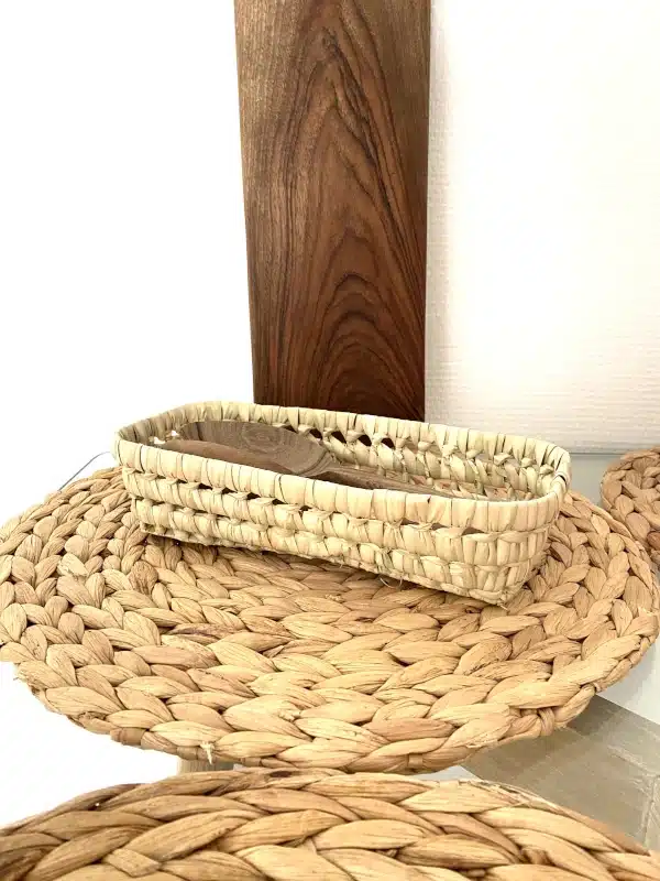 Corbeille en feuilles de palmier tressées, idéale dans la cuisine, la salle de bain ou encore sur le bureau ou en vide poche …